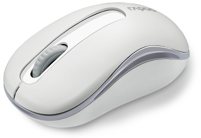 עכבר אלחוטי ואיכותי מבית Rapoo בעל עיצוב מהודר וקומפקטי עם כפתור כיבוי לחיסכון בסוללה, רזולוציה של 1000dpi ותדר אלחוטי 2.4GHz.